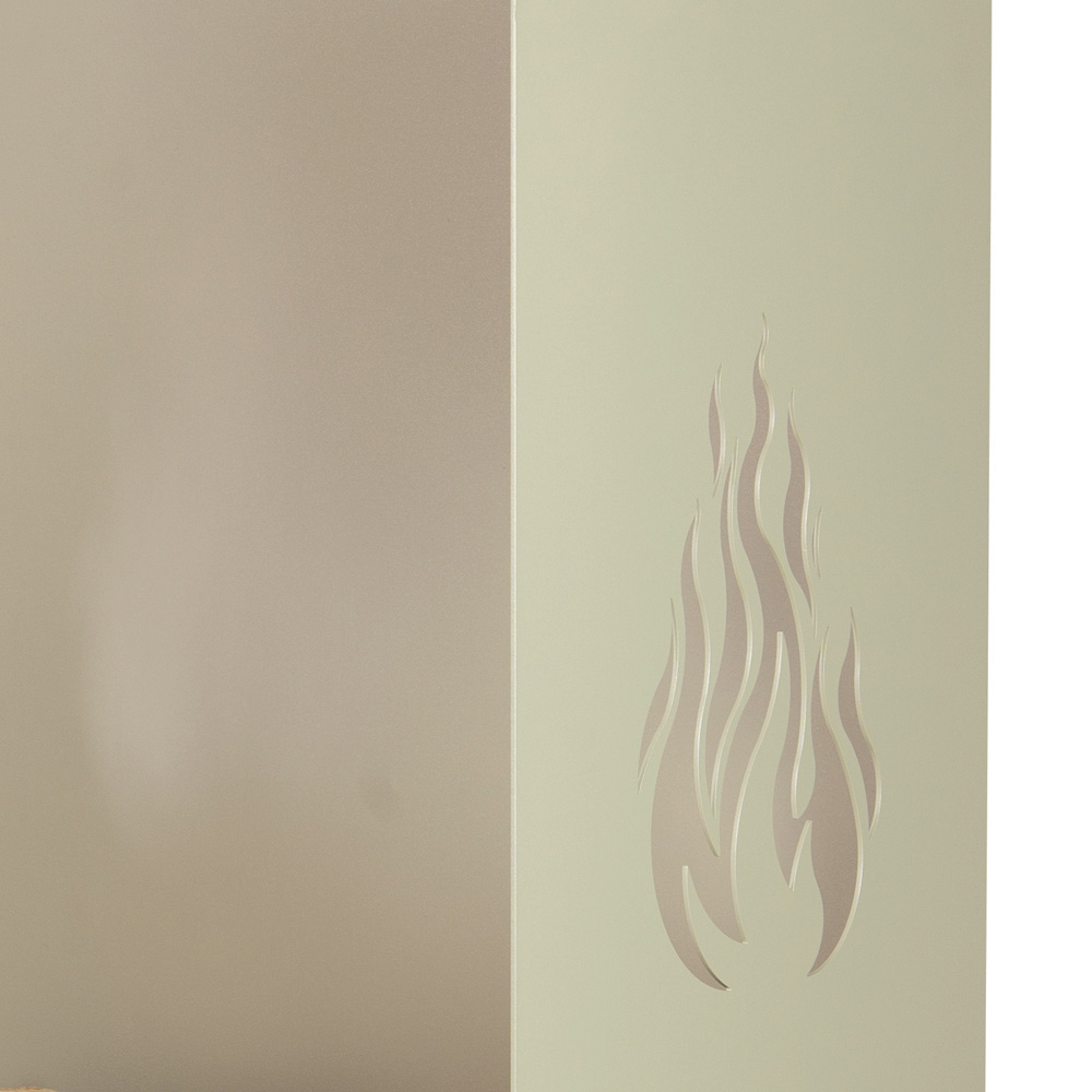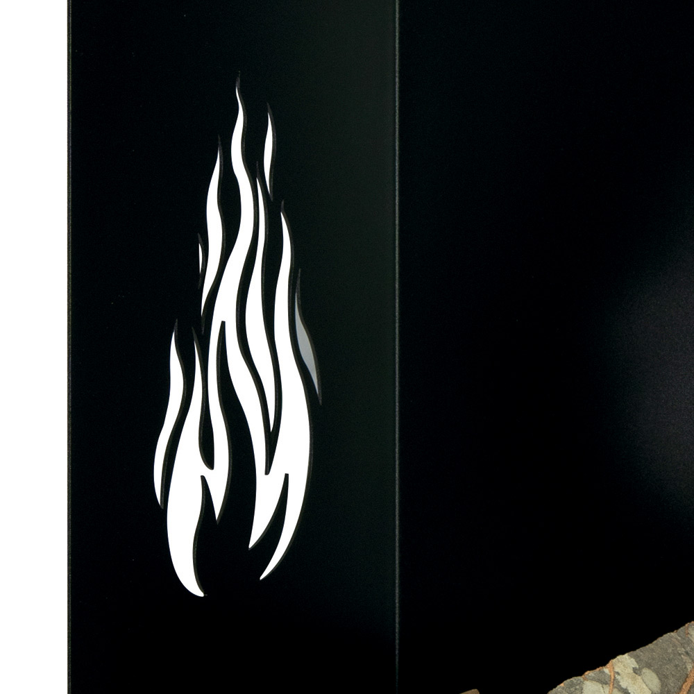 This metal log holder is a perfect combination of aesthetics and practicality , an indispensable object for lovers of the traditional fireplace. The design is modern and robust , with flame motifs on both sides, which not only embellish the piece but also allow you to see the wood stored inside, immediately suggesting its purpose.