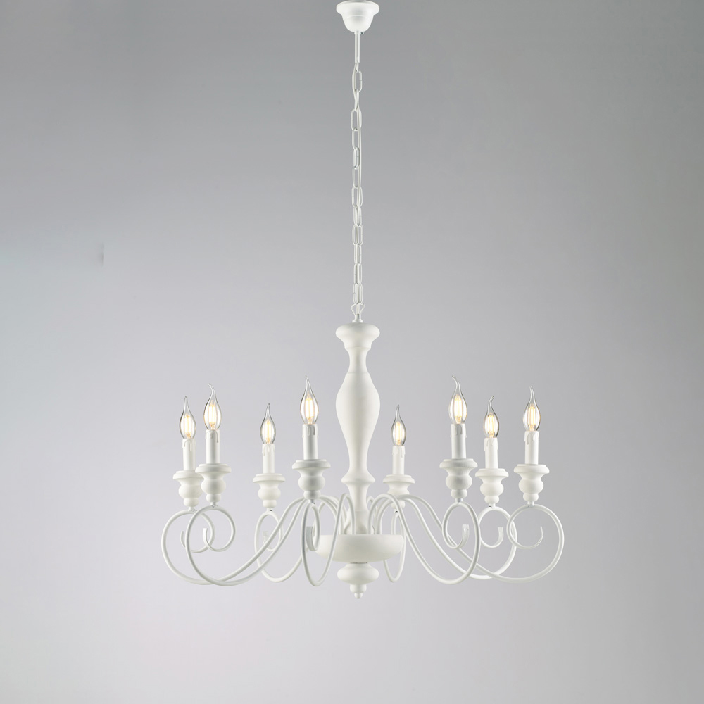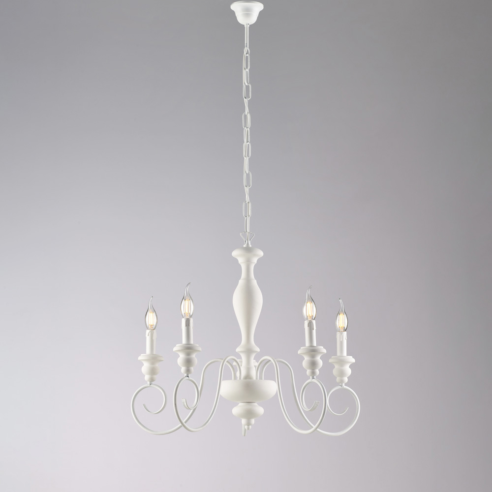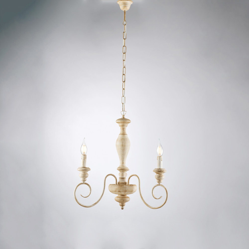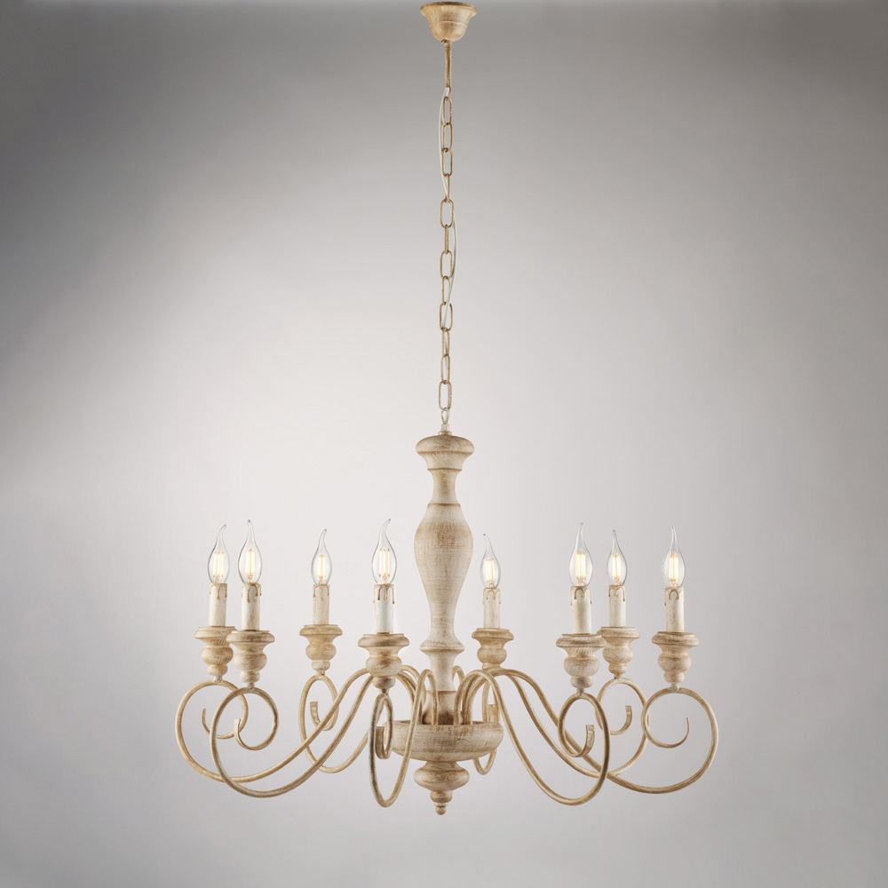Elegant and timeless, this classic chandelier, handcrafted in wood and iron, is a luminous creation that expresses all the charm of shabby chic style, reinterpreted with a refined touch. The slender structure, with sinuous arms and candle-style lights , lends lightness and harmony to the space, creating a warm and welcoming atmosphere.