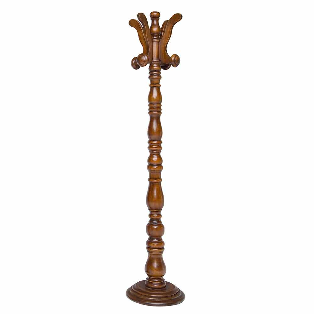 Beech wood coat stand with round MDF base with simple and sinuous queues suitable for elegant and refined environments.