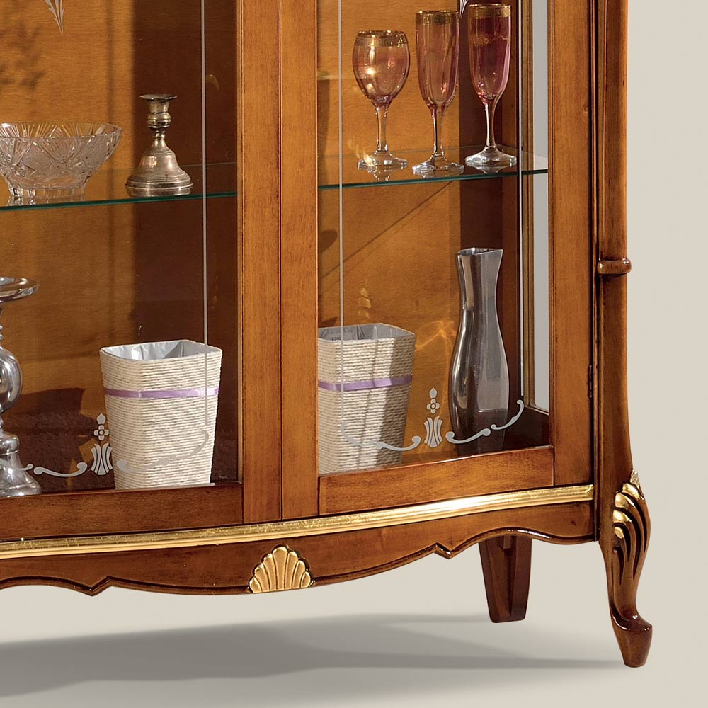 Classic style living room display cabinet with structure made of wood with Bassano walnut and antique gold finish with silk-screened glass. A unique and refined complement, completely made in Italy by skilled master craftsmen , masters of art who finish each complement with wisdom and taste for elegance. The production is carried out using fine materials , and performing the work by hand with the utmost care and professionalism that distinguishes Made in Italy products.