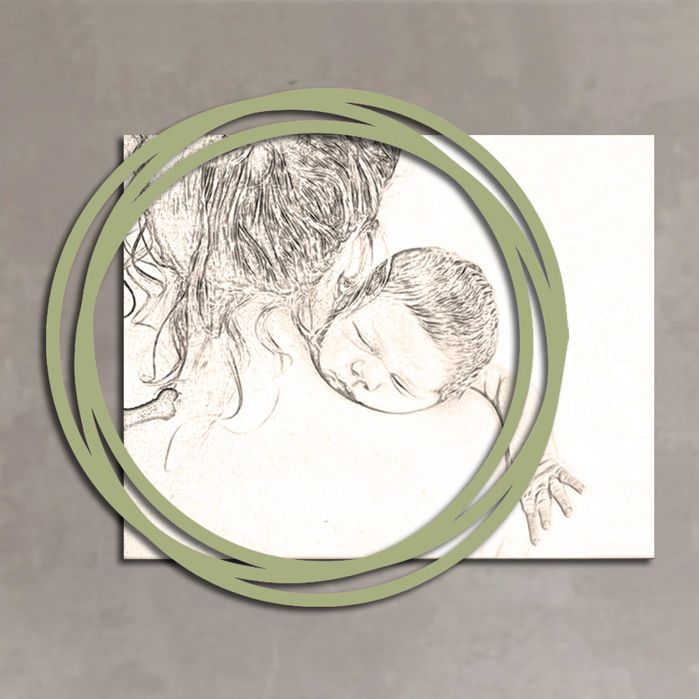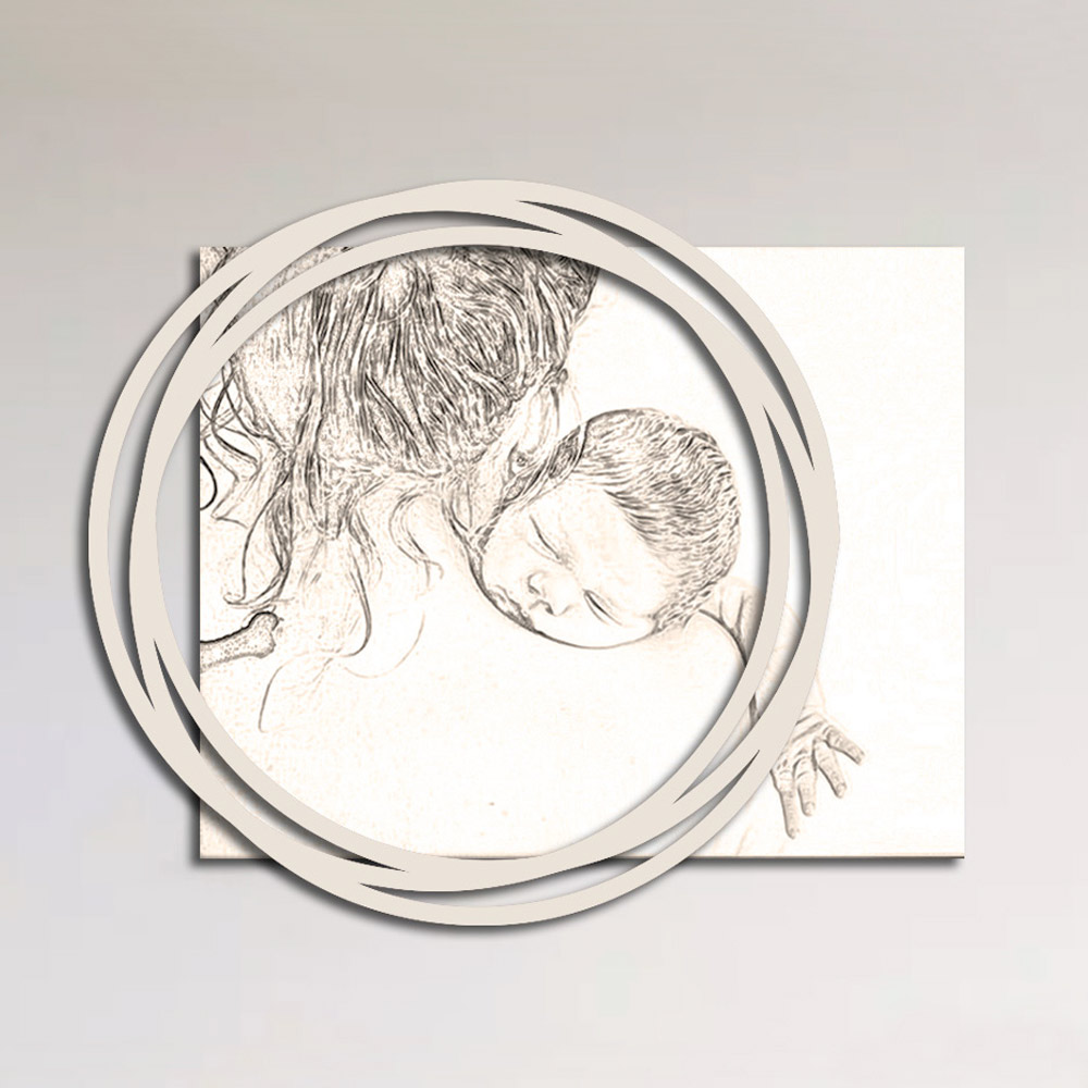 sweetness and affection of a mother's embrace , highlighted by the round frame. The finishes, the wood chosen for the production and the printing technique highlight all the