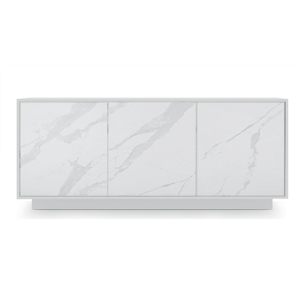 Sideboard in lacquered wood with marble effect HPL laminate doors Made in Italy.