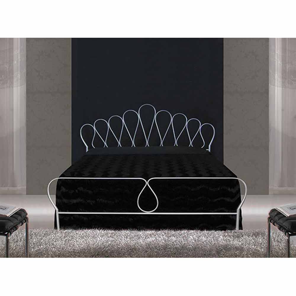 The wrought iron bed in the DOUBLE HEADBOARD WITH WALL ATTACHMENT variant requires the insertion of a 160 cm. bed base that must be supported by its own legs. In case there are particular needs related to physical conformation, to the combination with existing bed bases or simply to aesthetics, this model, thanks to our artisan productivity, can be modified in height.