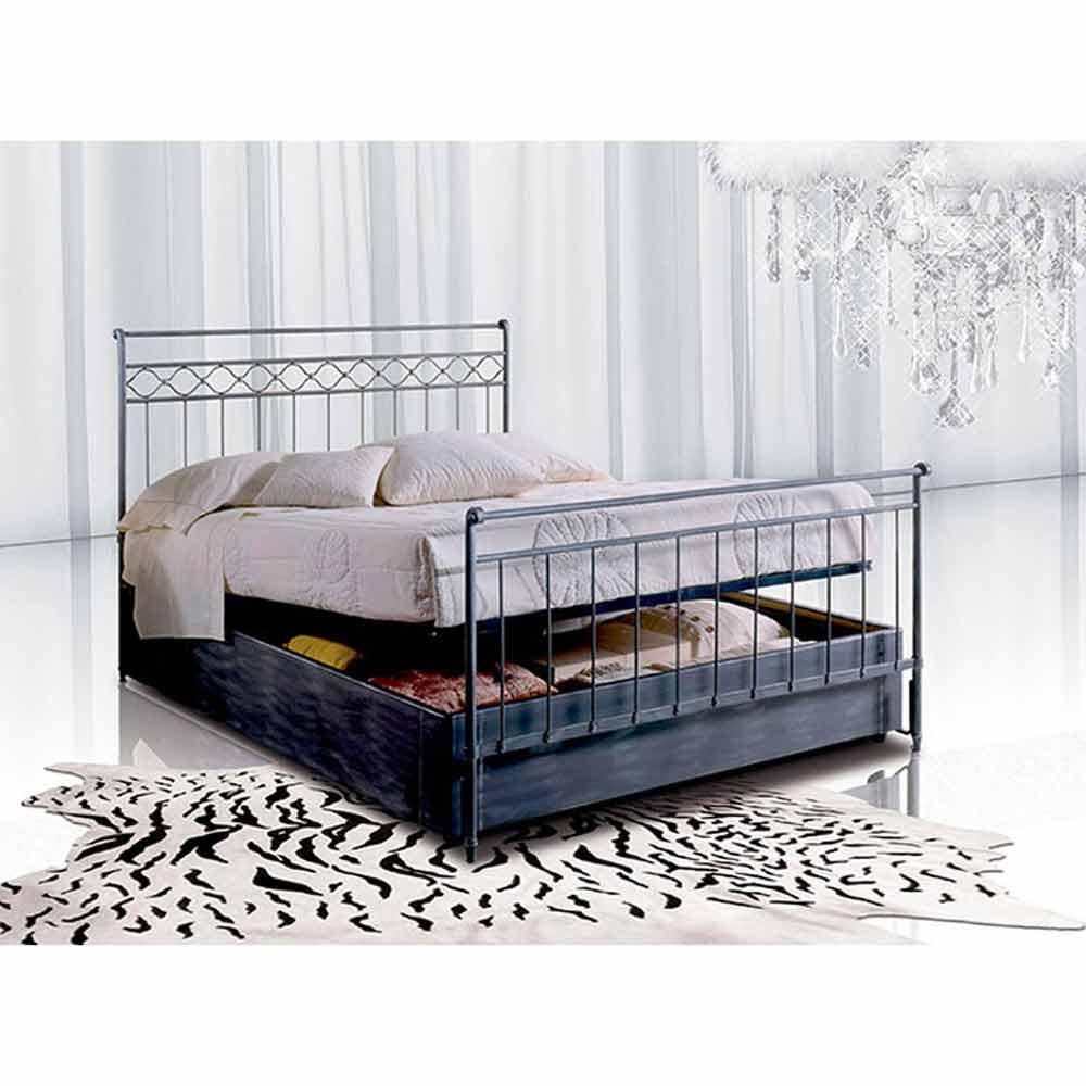 - Wrought-iron single bed Efesto - Headboard with footboard and storage