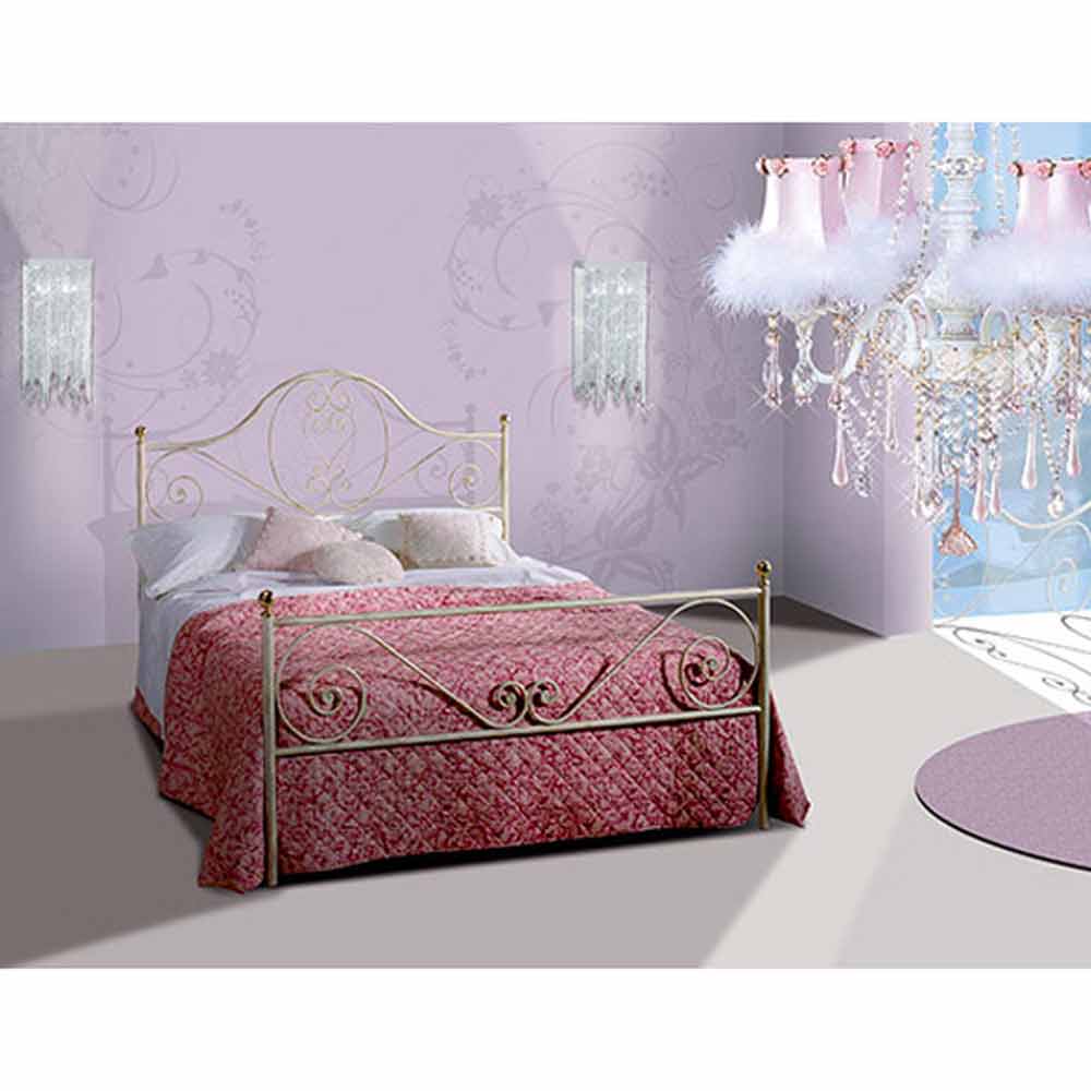 Wrought-iron small double bed Gea, handmade in Italy.